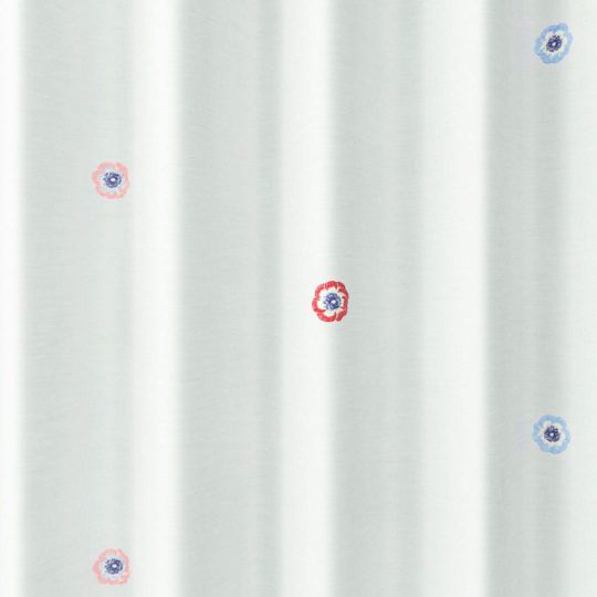 パンジーの花の刺繍が可憐で優しげな北欧風ボイルレースカーテン。無地のボイル生地に赤、ピンク、ブルーの大きめの花の刺繍が印象的なシンプルデザインレースカーテン。