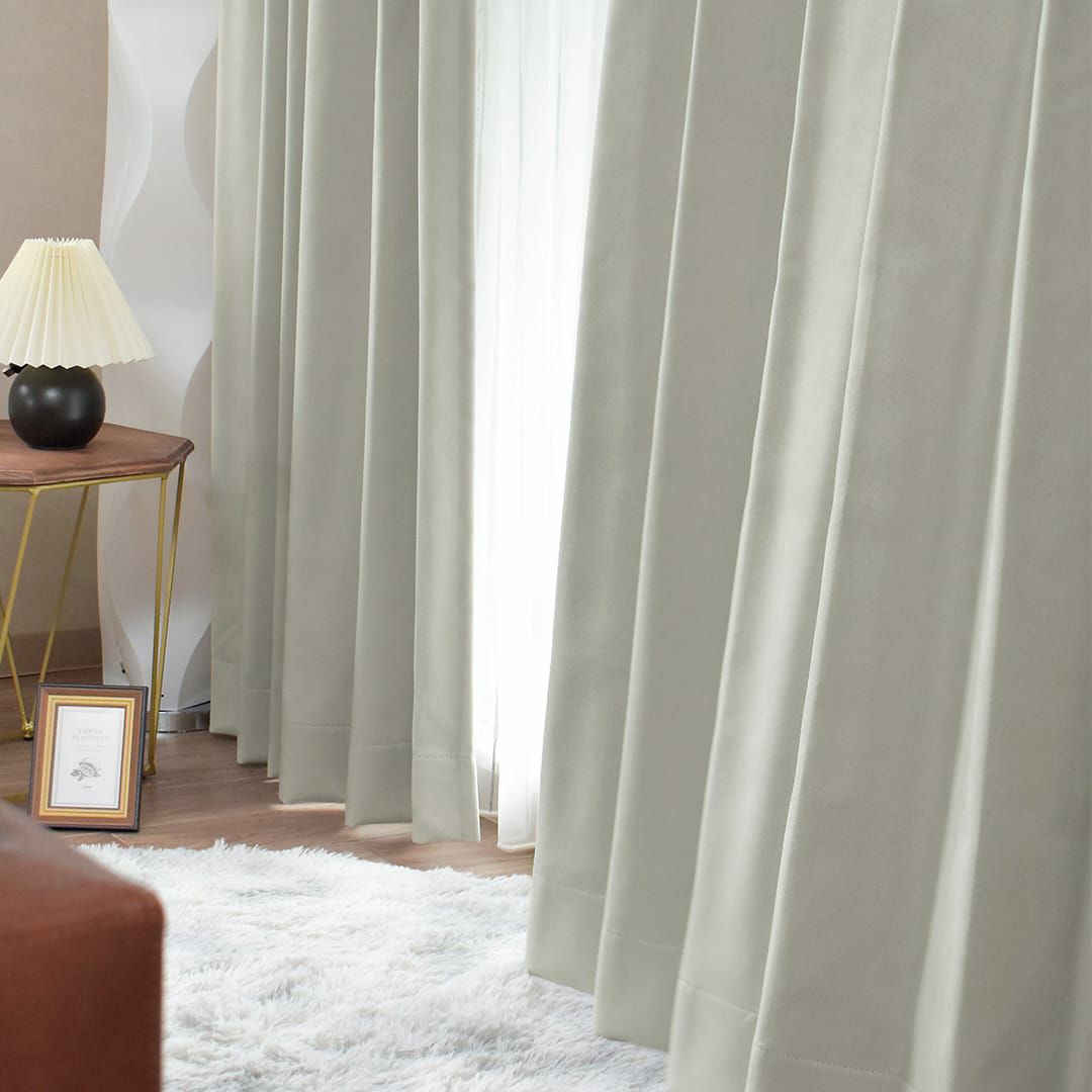 ※全ての写真の仕様は1.5倍ヒダです。 生地を起毛させているのでふっくらと柔らかな風合いです。 ベロア調な生地感に仕上がるので、高級感があります。 落ち着きのあるグレーはホテルライクやモダンなお部屋にぴったりです。 1級遮光生地なので寝室にもおすすめ。 形状記憶加工が付いているので、ヒダがおさまり綺麗な仕上がりになります。