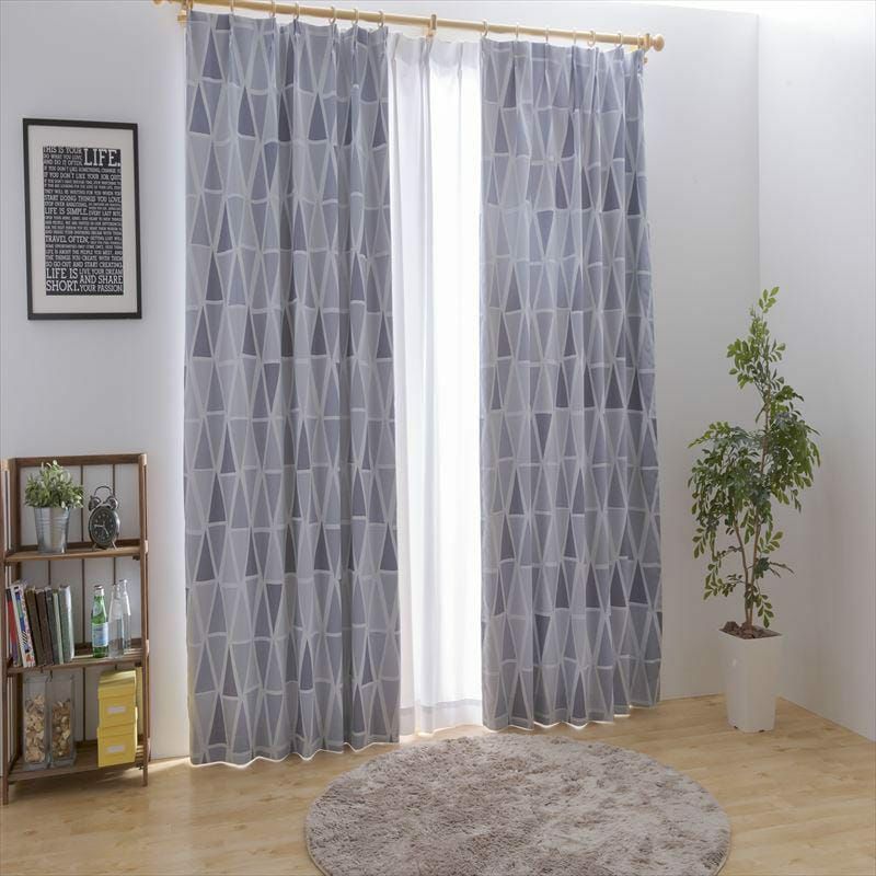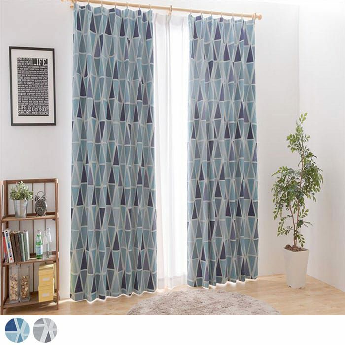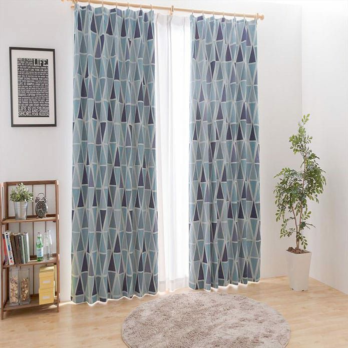 ノルディモシリーズのモダンなデザインのカーテンです。 形状記憶加工付きなのでヒダも美しく、洗濯も可能なのでお手入れも簡単です♪ ブルーはクールで、シャープな幾何学模様をよりスタイリッシュにしてくれます。