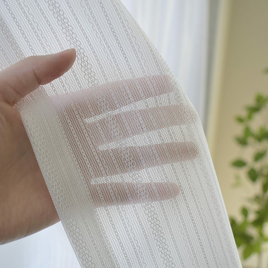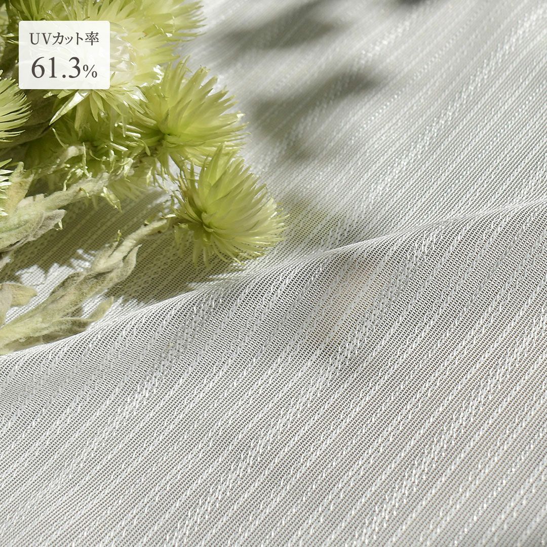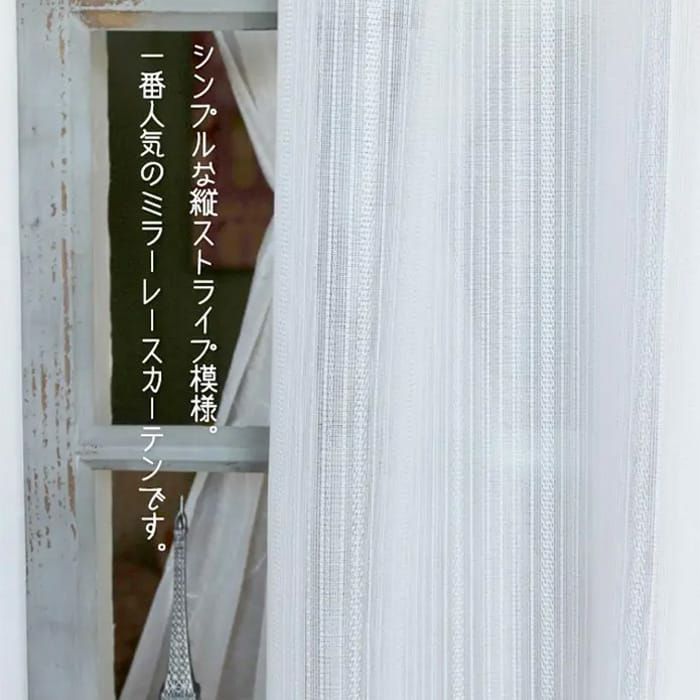 紫外線カット率61.3%のUVカットレースカーテン! ミラー加工付きなので、日中の外からの視線を遮ります。 程よい透け感でお部屋に優しく光を取り入れてくれます。 シンプルな縦ストライプ模様でどのお部屋にもお使いいただけます。 ウォッシャブルなので自宅の洗濯機で洗えてお手入れ簡単です!