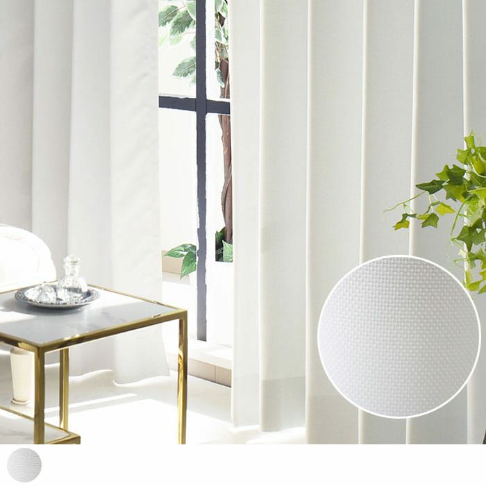人気の白いカーテンに防炎・遮光・防汚の機能付きがうれしい。 やや青味がかった白地でお部屋が広く、スッキリして見えます。 遮光2級なので強い日差しを遮ってくれるので、リビングや寝室におススメです。 ※写真は全て2倍ヒダです