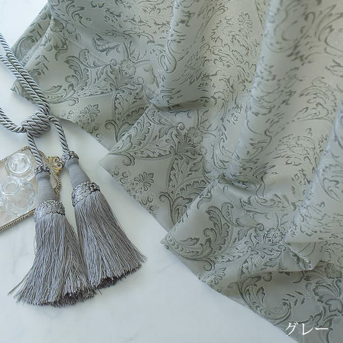 クラシックな紋様がジャガード織りで表現されており、上品で美しいエレガント&クラシックなカーテンです。5色からお選びいただけます。 ※写真は全て2倍ヒダ(形状記憶なし)です。