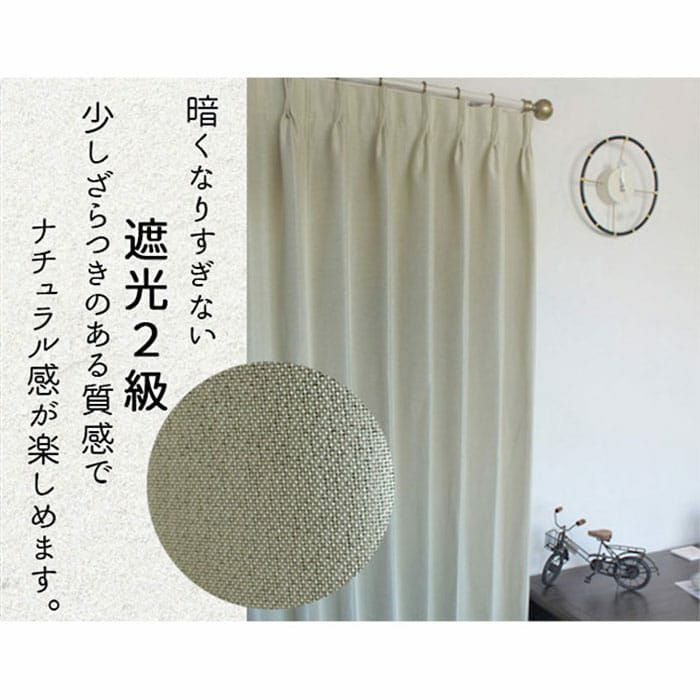 白っぽい糸が混ざった織りで明るく落ち着いた空間になります。 ラフでおしゃれな2級遮光カーテンでトレンド感のあるお部屋に。