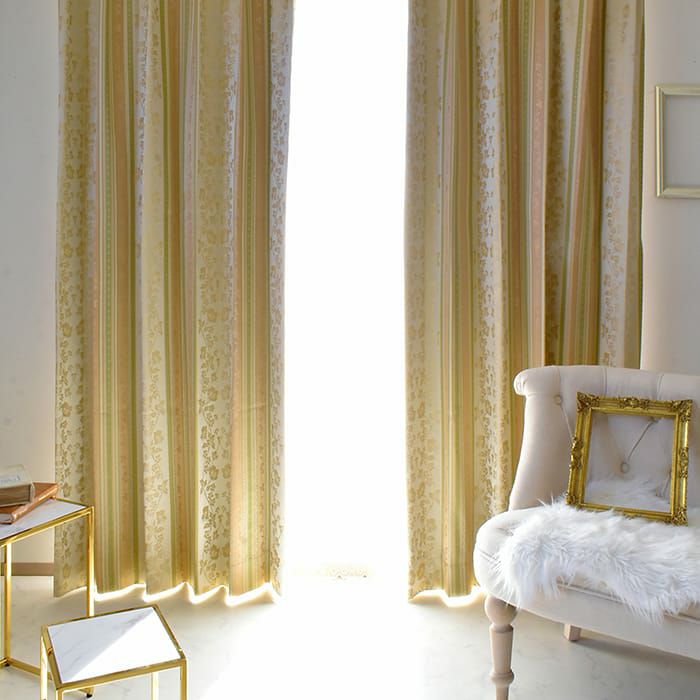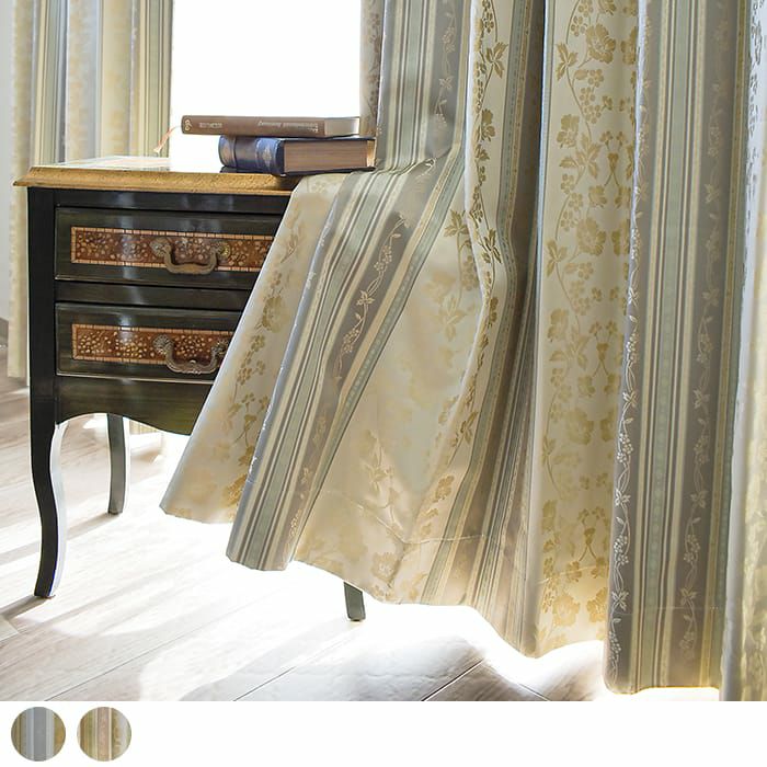 花唐草模様のストライプ多機能ジャガードカーテン 【完全遮光カーテン】アラベスク