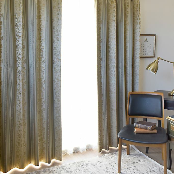 ストライプ状に織り込まれた花唐草模様が美しい、ジャガード織の高級感のある質感のある多機能カーテン。