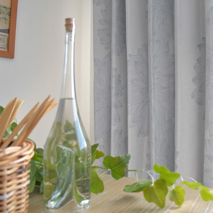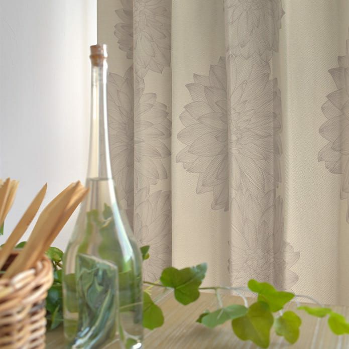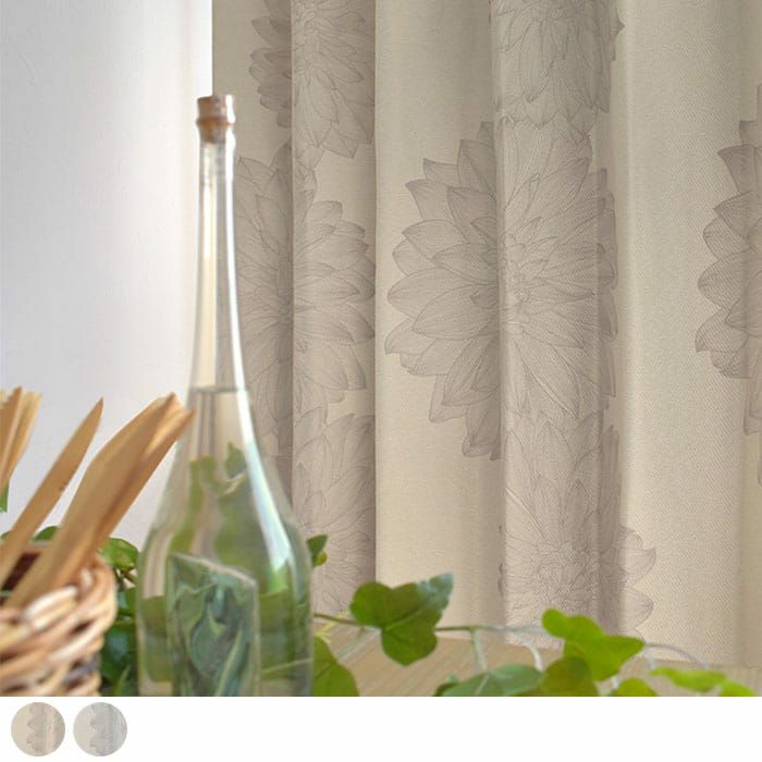 完全遮光のコーティング加工、遮熱、保温、防音のダリアの花柄デザインカーテン 【完全遮光カーテン】ダーリエ
