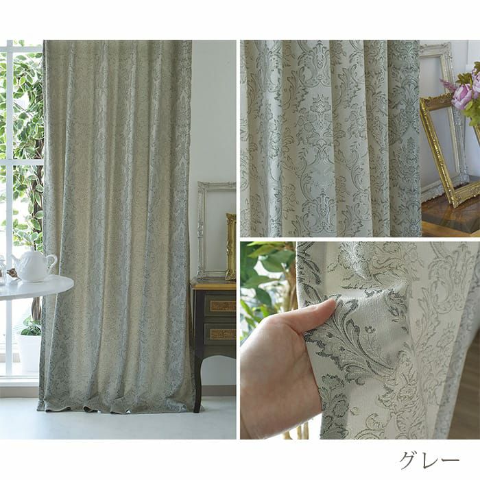 クラシックな紋様がジャガード織りで表現されており、上品で美しいエレガント&クラシックなカーテンです。5色からお選びいただけます。 ※写真は全て2倍ヒダ(形状記憶なし)です。