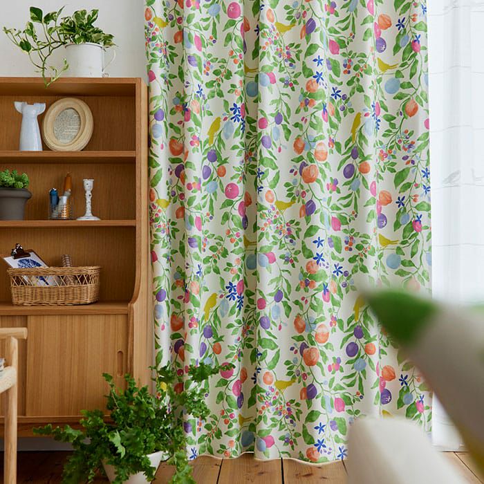 フルーツと小鳥が愛らしい遮光カーテン