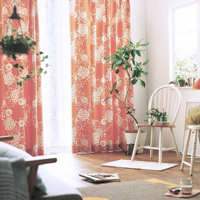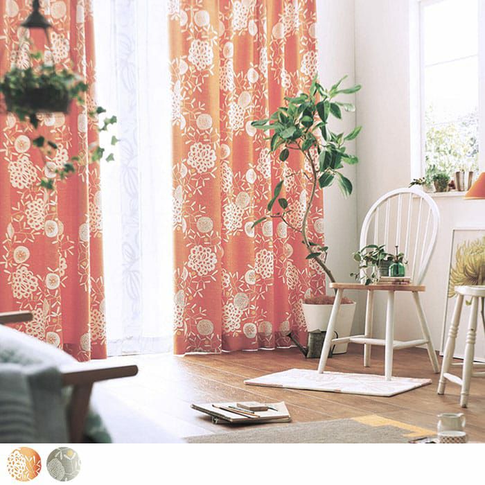 ホワイトのプリントで爽やかに仕上げた北欧遮光カーテンです。 オレンジは華やかに、グレージュは落ち着いた大人っぽい印象に。