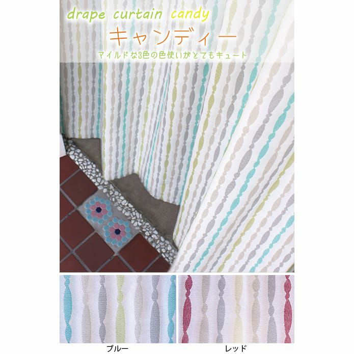 縦に広がるラインが天井を高く見せるドレープカーテン キャンディみたいなデザインが窓辺を優しく包み込みます お部屋をスイートキュートにイメチェンしたい方にマストアイテム♪