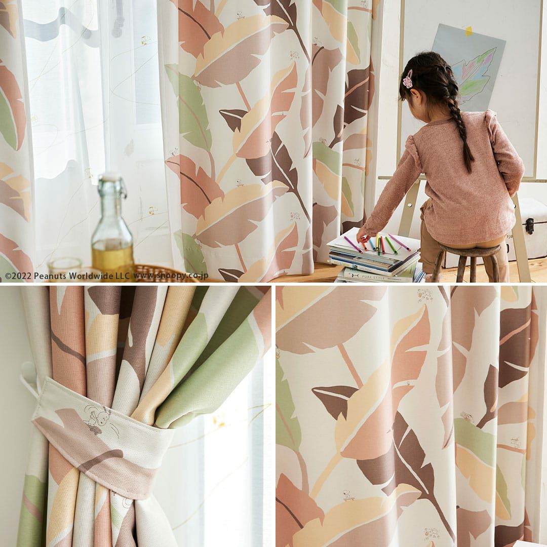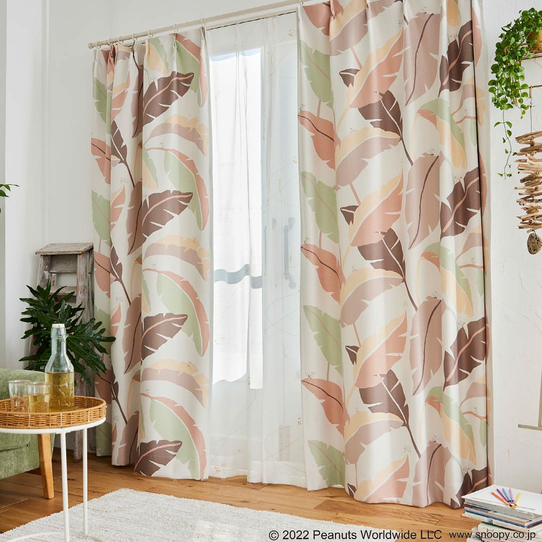 大きなリーフの中にスケートボードに挑戦するスヌーピーがデザイン 【遮光カーテン】ワイルドリーフ|ピーナッツ