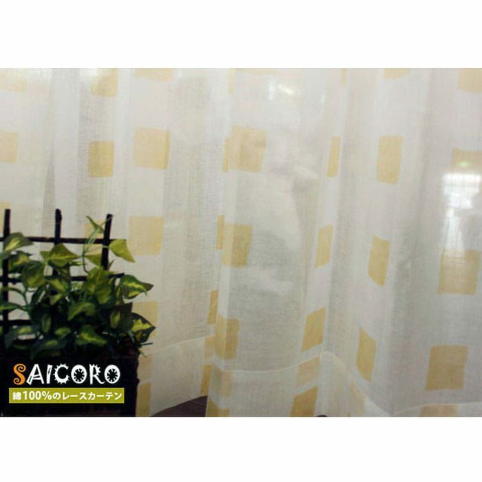 コットン100%レースカーテン。格子柄がたくさん並んだ、ポップなデザインのナチュラルレースカーテンです。 4色からお選びいただけるので、カーテンの色に合わせたコーディネートをお楽しみください!