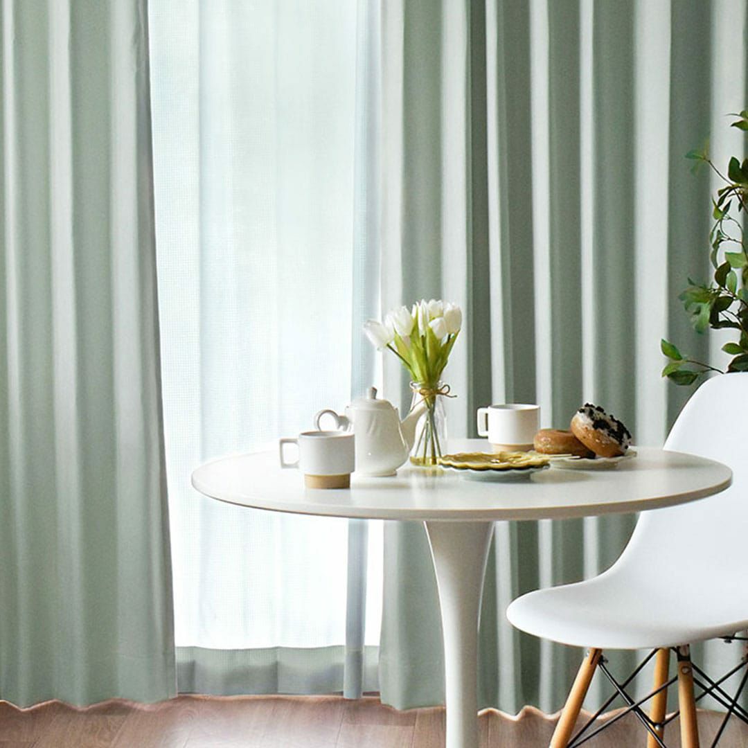 生地感も透明感も楽しめるくすみパステルのコーディネート♪ベーシックスタイル/フロントレーススタイルで、ガラッとお部屋の雰囲気が変えられます!