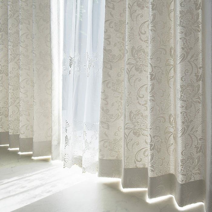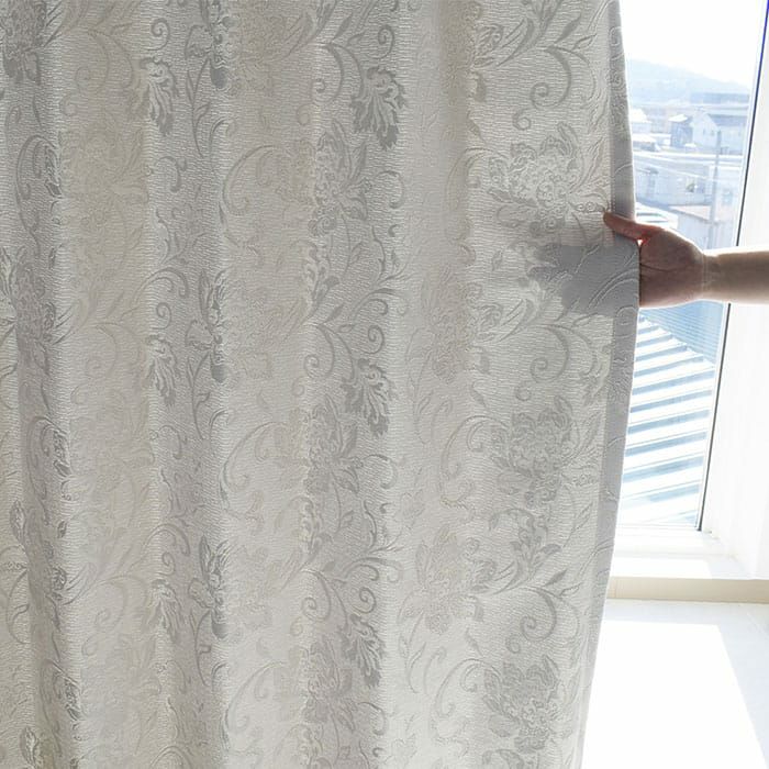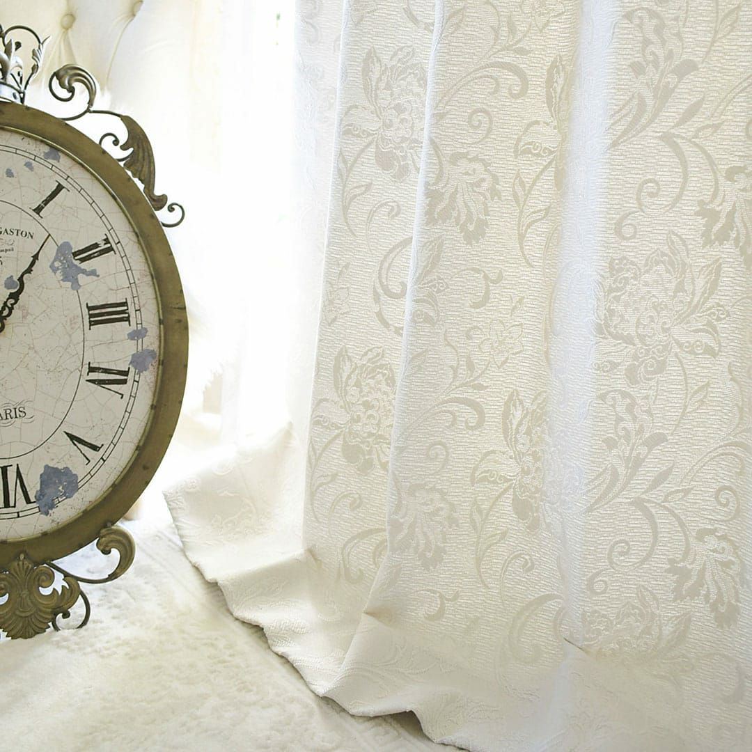 ホワイトのクラシックな花柄のジャガード織り遮光カーテン
