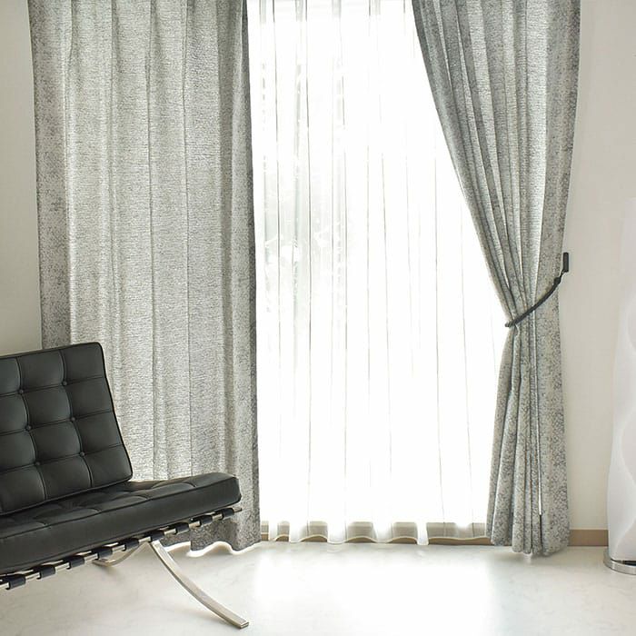 ワニ柄のような美しいテキスタイルが大人モダンな雰囲気のカーテンに仕上がっています。