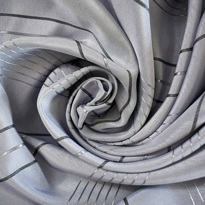 高級感のある光沢の生地のカーテンです。 さりげなく縦に入ったシルバーのラインが角度によってきらきら光ります! 3級遮光で強い日差しを和らげ、光も取り入れてくれます。