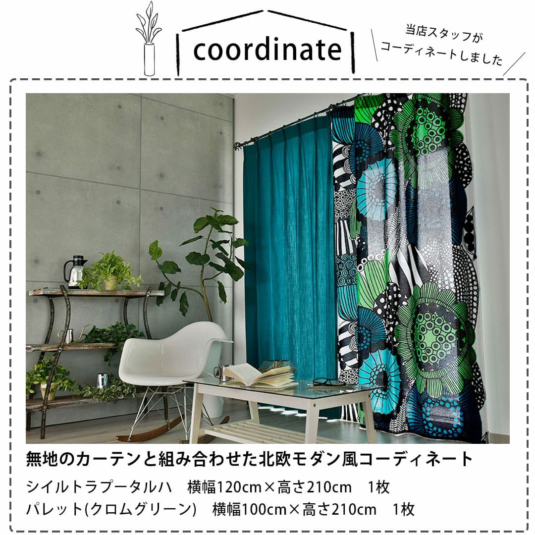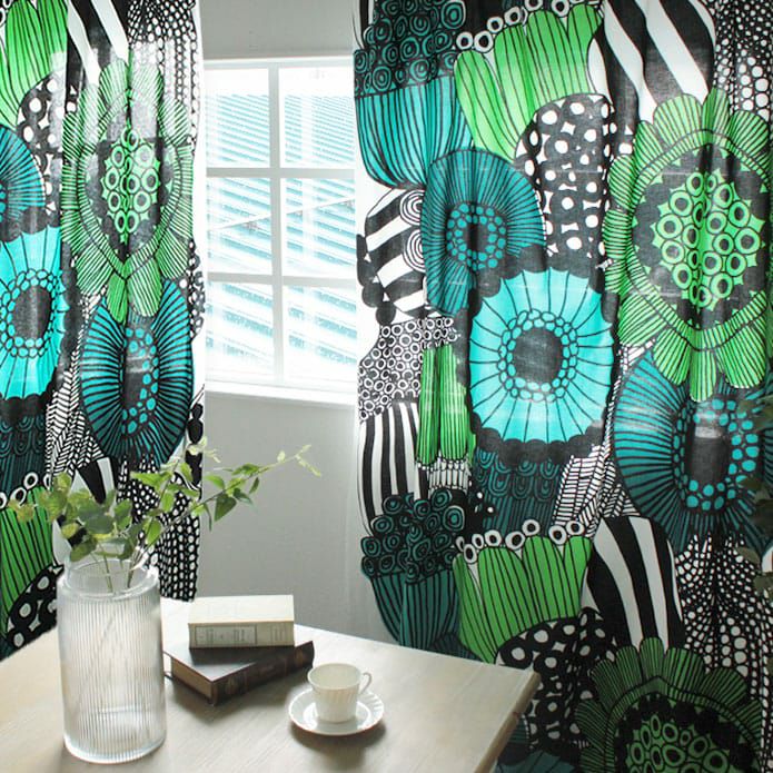 グリーンは鮮やかなグリーン×ブルーのお花が、お部屋に映えてインパクト大! お部屋の雰囲気を一気におしゃれにしてくれます。 カラーレースを合わせたり、無地のカーテンと組み合わせてもGOOD!