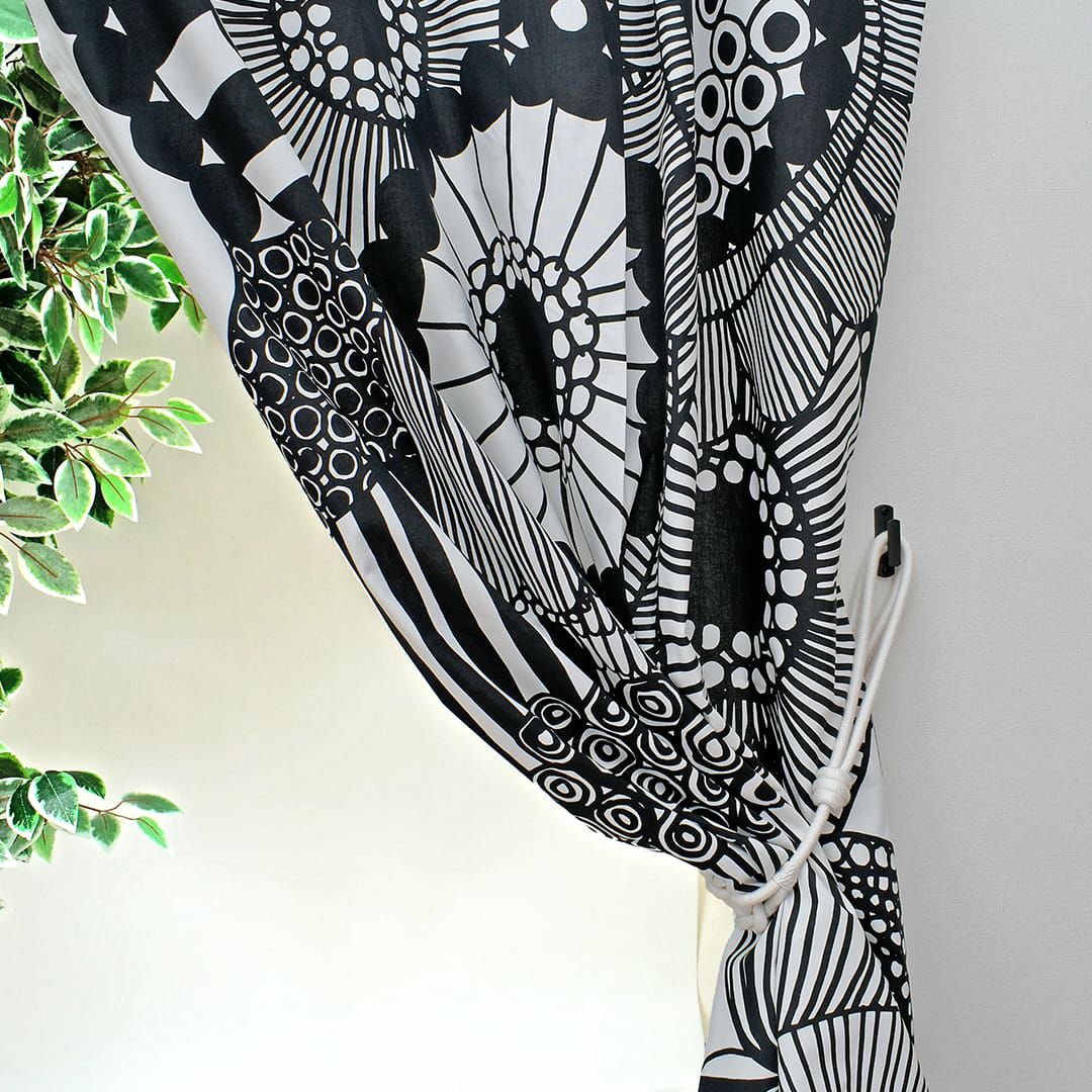 お客様のご要望から、「ホワイト×ブラック」もドレープカーテンで作れるようになりました! ホワイト×ブラックはモノトーンの配色でモダンな印象。 白黒の家具にあわせればシックかつ遊び心が感じられるお部屋に。