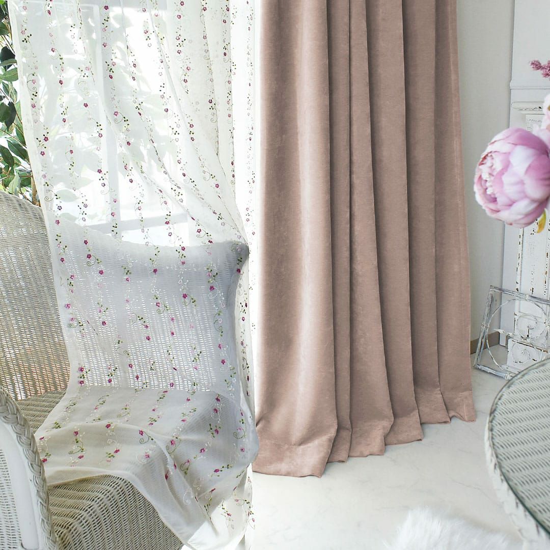 エレガントさを求めるなら淡い色、重厚感を求めるなら濃い色がおすすめです。 遮光カーテンなので光を遮ってくれます。