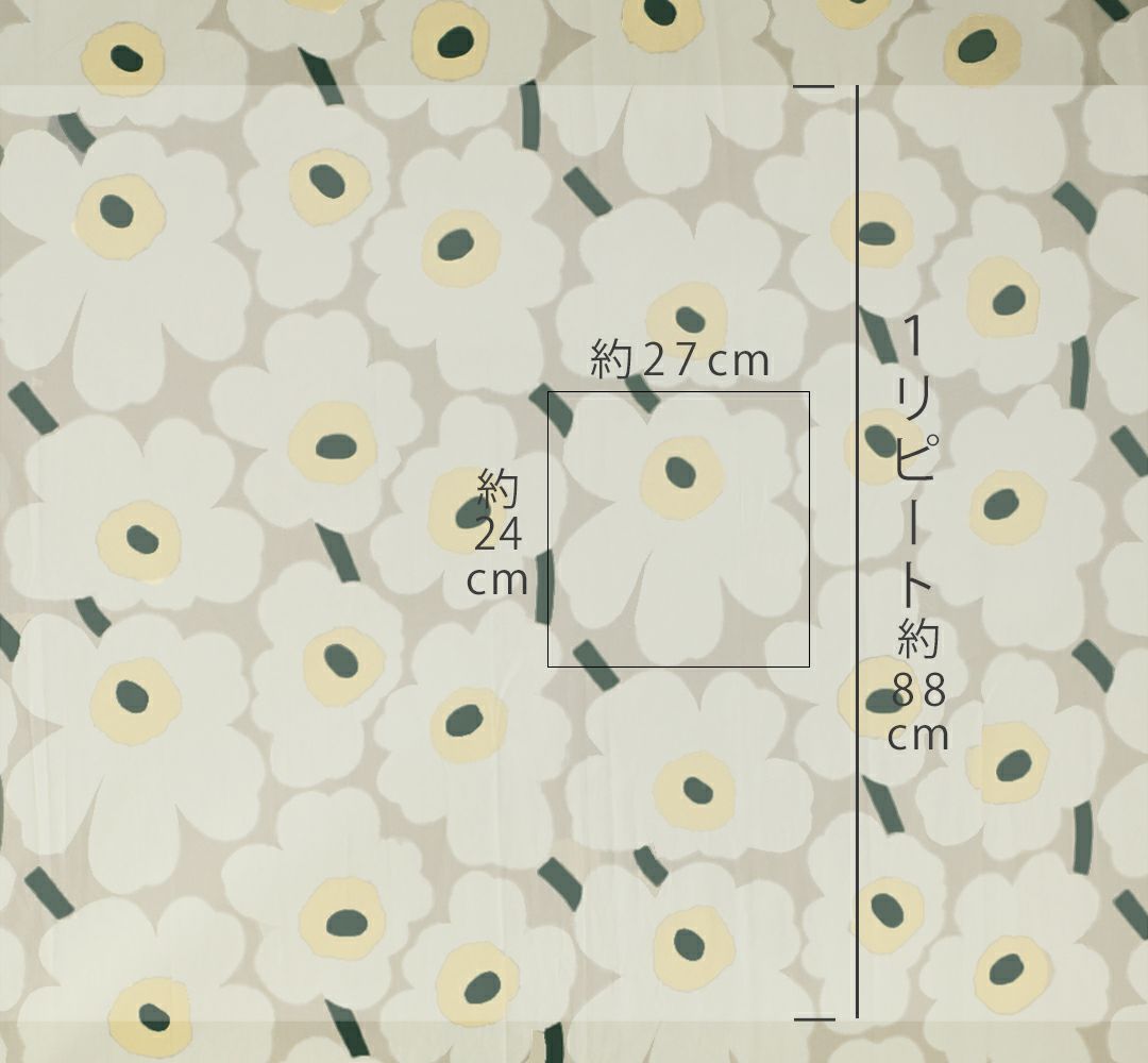 「ウニッコ」の中柄版の「ピエニウニッコ」 Maija Isola(マイヤ・イソラ)がデザインした ケシの花をモチーフにしたマリメッコを代表とする柄です。