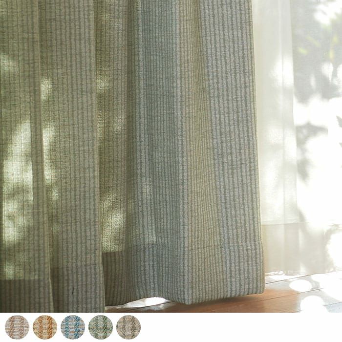 コード調の少し変化のある細い縦のライン柄が全体に入っています。 ドビー織りで描いたストライプとミックス糸をアクセントにして、高級イメージに仕上げました。 シンプルで程よいカジュアル感のあるストライプカーテンです。