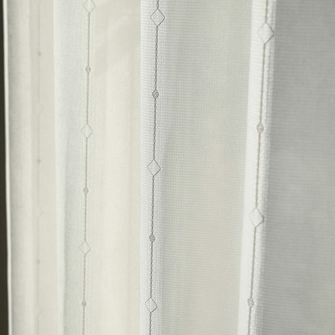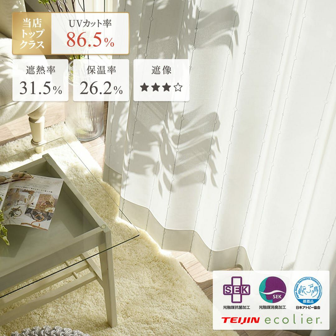 他の画像を見る キラリと輝く刺繍のラインが美しい、帝人エコリエの糸を使用した遮熱レースカーテン 【プライバシーレースカーテン】エコキララ 詳細を見る お気に入りに追加する ¥ 2,550 税込 遮熱 保温 防汚 UVカット ミラー 花粉キャッチ 洗濯機 無料サンプル請求