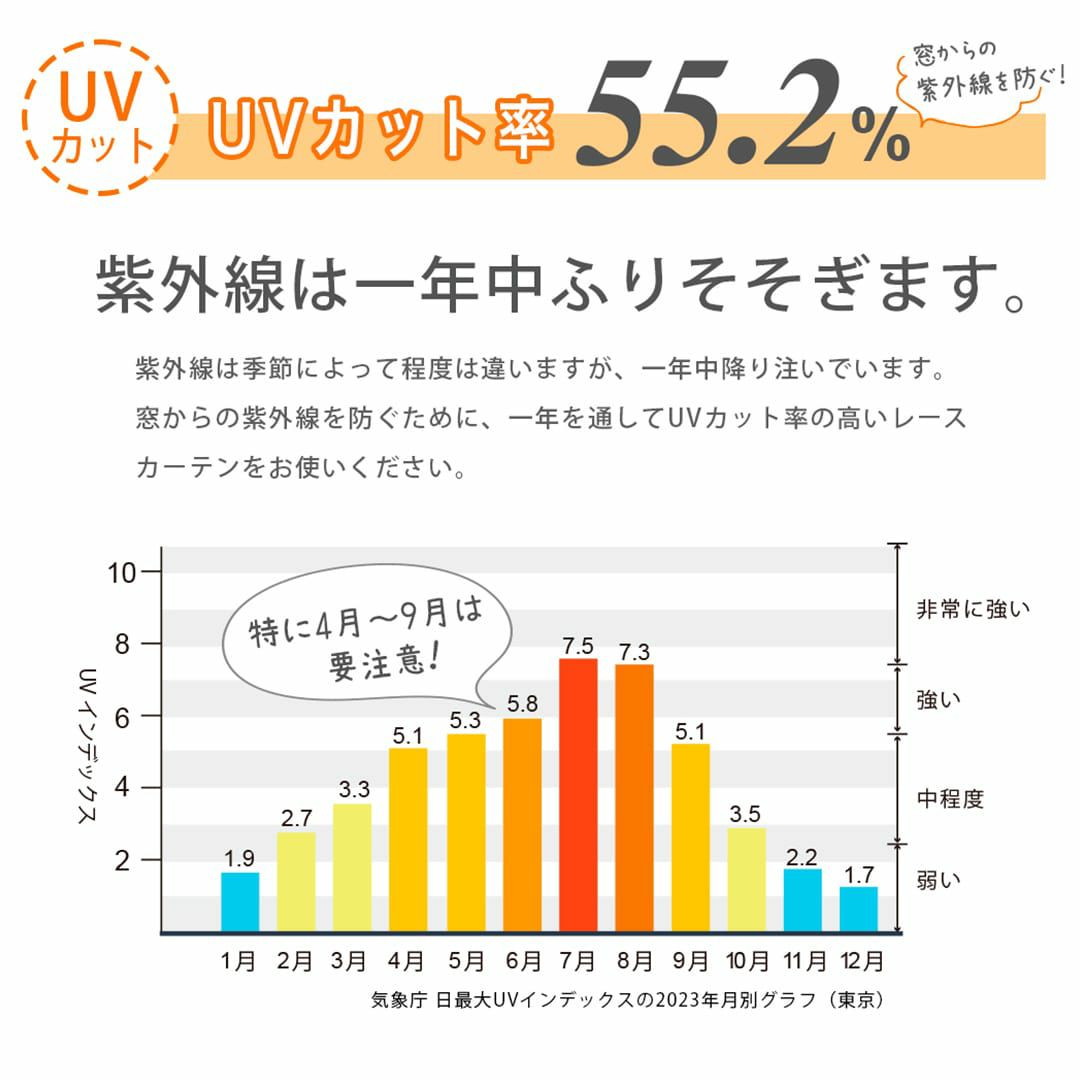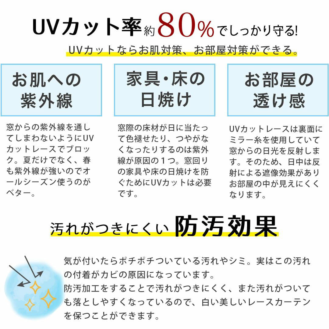 他の画像を見る 遮熱効果あり!程よい透け感のあるUVカットレースカーテン 【UVカットレースカーテン】朝涼 詳細を見る お気に入りに追加する ¥ 4,400 税込 遮熱 UVカット 洗濯機 無料サンプル請求