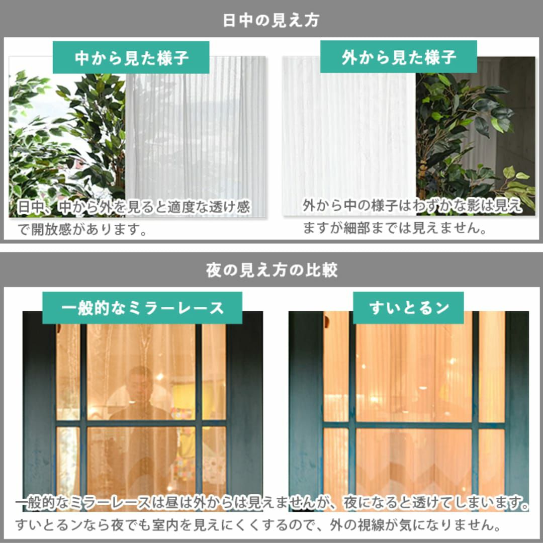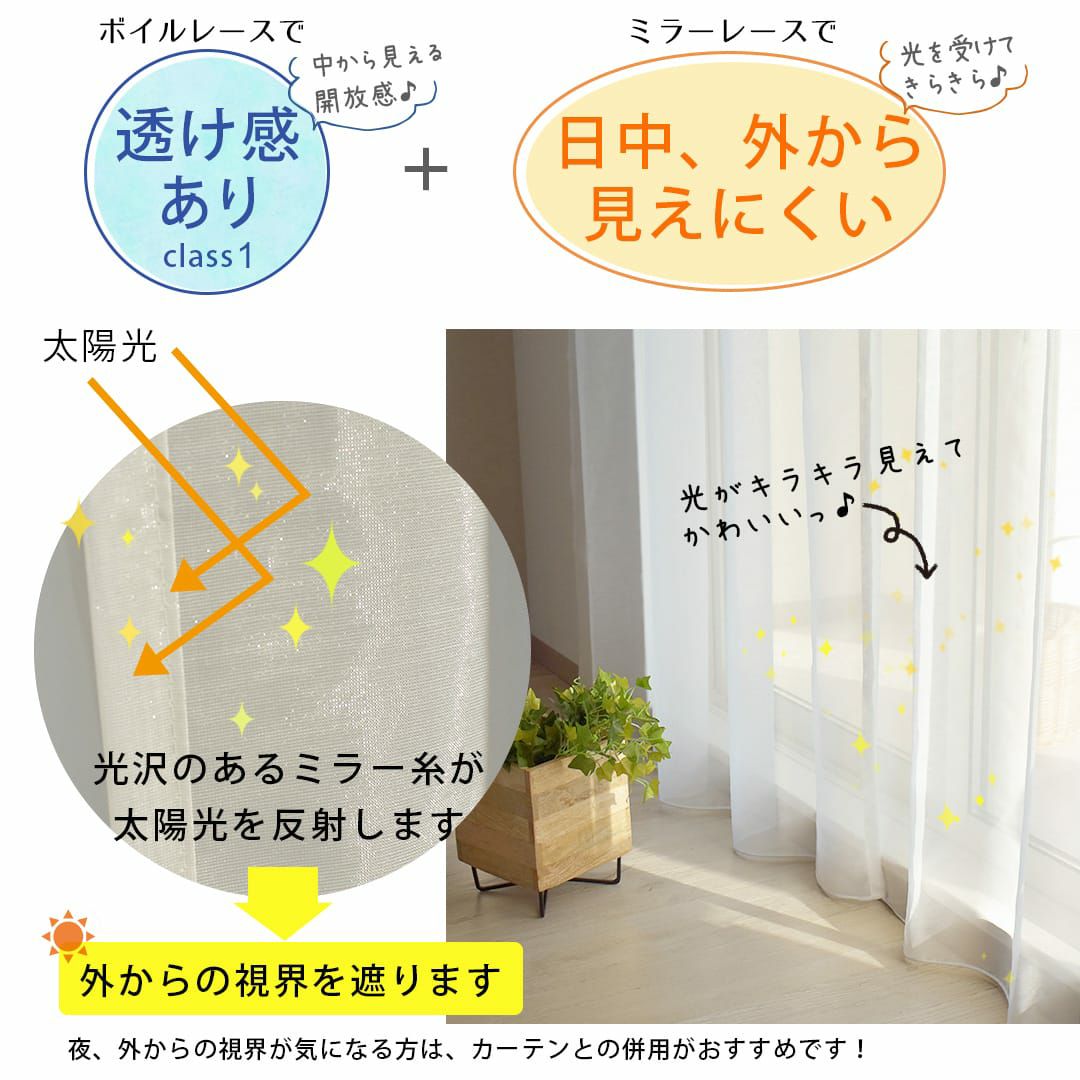 他の画像を見る コスパ最強!夜も透けにくい高機能なレースカーテン 【遮像レースカーテン】ミエーヌプラス 詳細を見る お気に入りに追加する ¥ 2,550 税込 売れています 防炎 ミラー 遮像(昼夜透けにくい) 洗濯機 遮熱率33.5% 保温率25.6% UVカット率87.3% 無料サンプル請求
