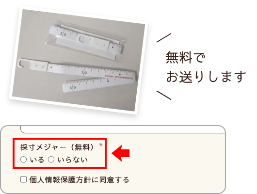 ご希望のお客様に限り無料で採寸メジャーをお送りいたします。