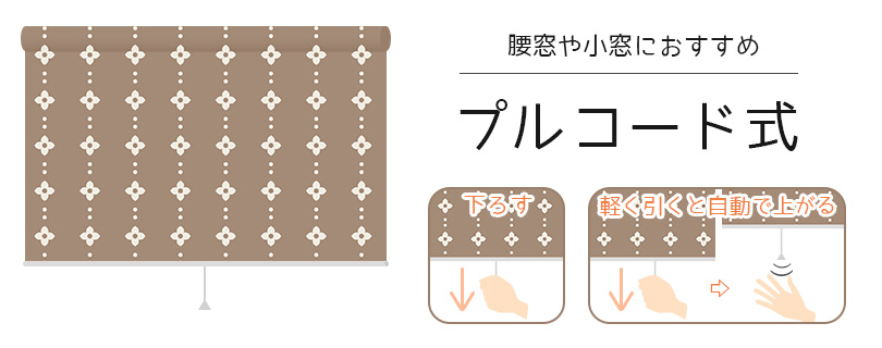 プルコード式は、スクリーン下部についたコードを引いて操作するタイプで、見た目がシンプルですっきりしているのが特徴です。