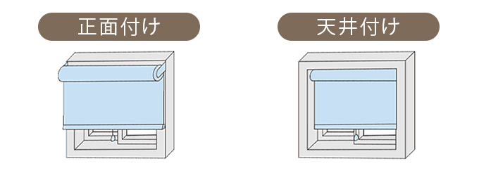 ロールスクリーンの取り付け方法には、主に「天井付け」と「正面付け」の2種類があります。