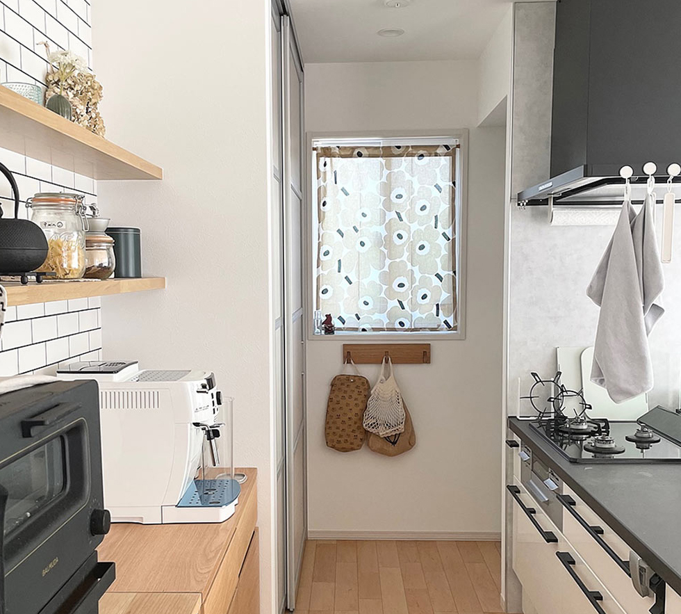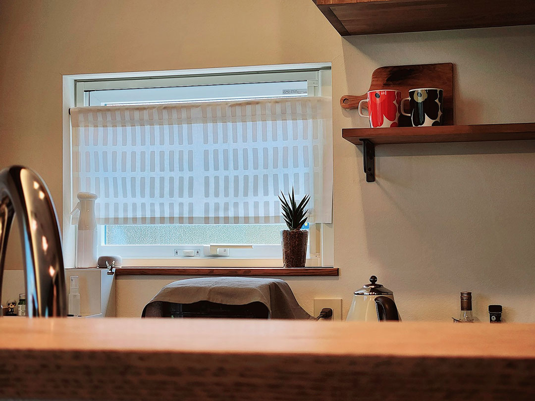 キッチン横の小窓にシェードカーテンを付けられたお客様の写真です。