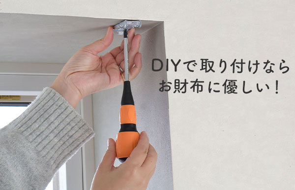 特に「カーテンレール付け」や「つっぱり式」は工具不要で手軽に設置できます。