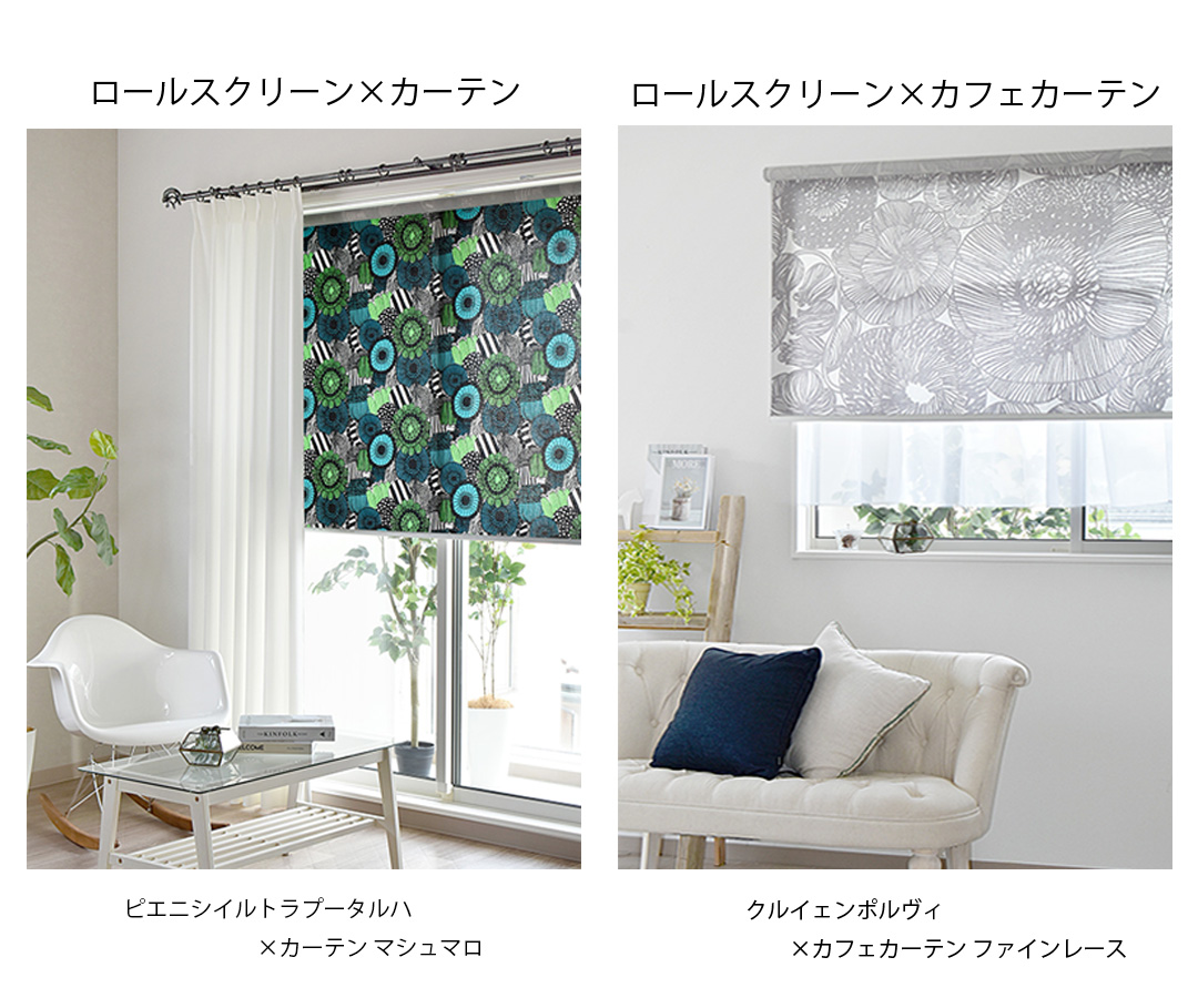 カーテンズでは、カーテンとお揃いの生地で作れるロールスクリーンも
